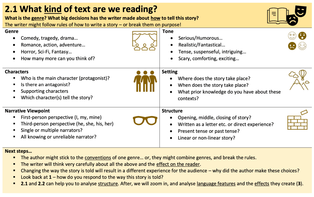 There are thousands of textbooks, websites and worksheets out there, and as teachers, we’re spoilt for choice – a choice that is often confusing and overwhelming. This is my attempt to make as few resources as possible: what is the minimum viable guidance that could be used alongside a text for a GCSE English learner?